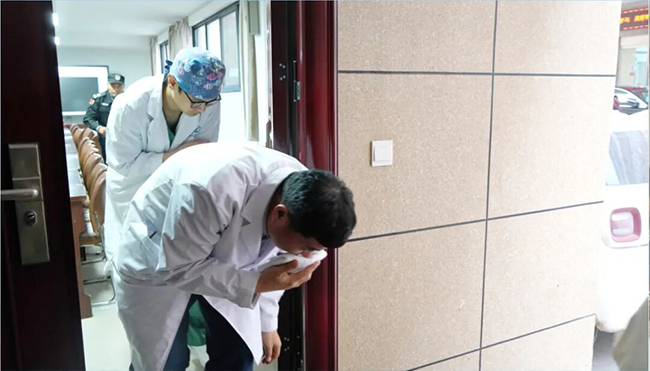 消防理论培训结束后,我院随即开展了实战演练。演练模拟了真实火情,在消防警报拉响后,全院职工迅速用湿毛巾捂住口鼻,弯腰低姿,沿疏散指示标志有序撤离至安全区域,整个过程紧张有序,有效检验了职工的应急反应与自救能力。